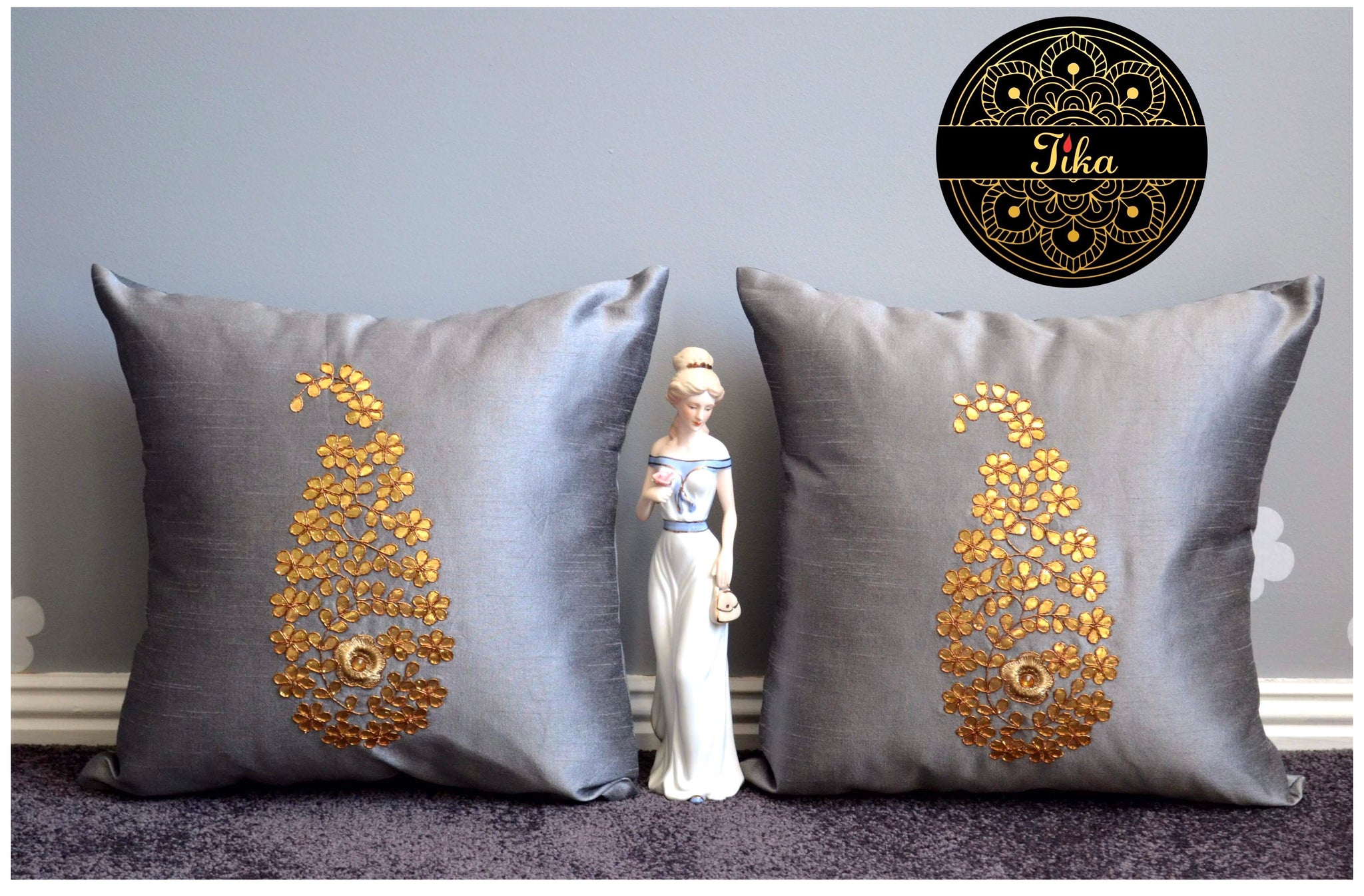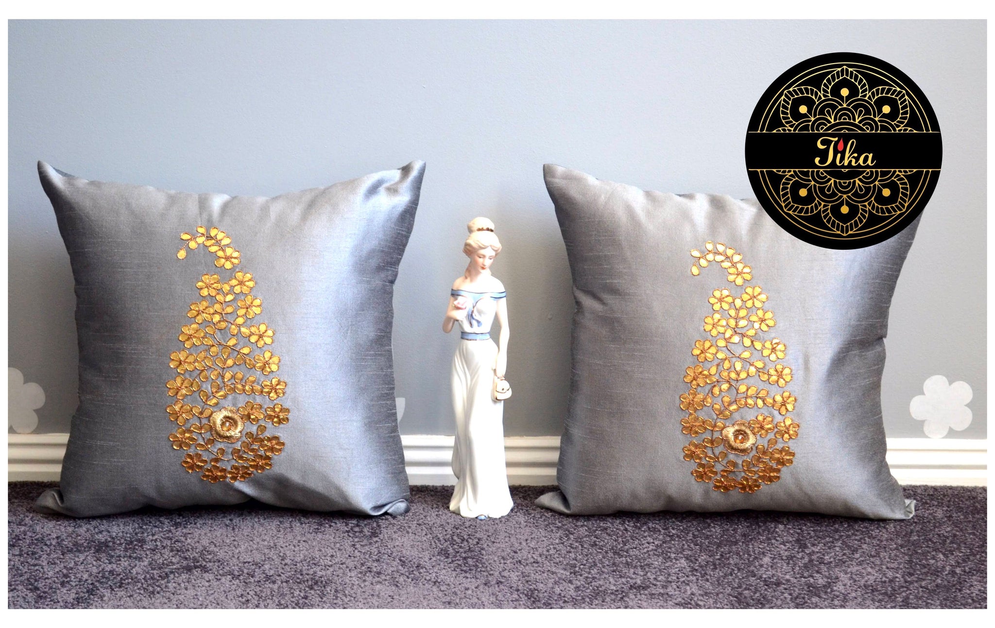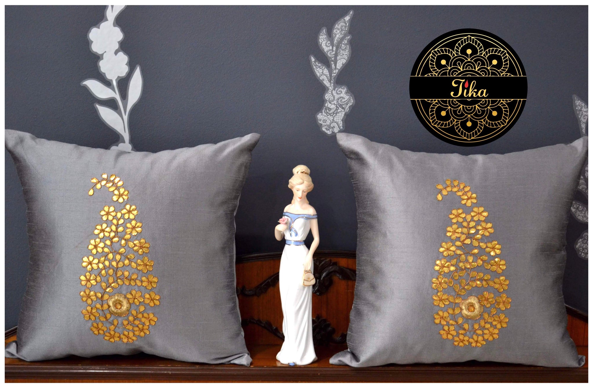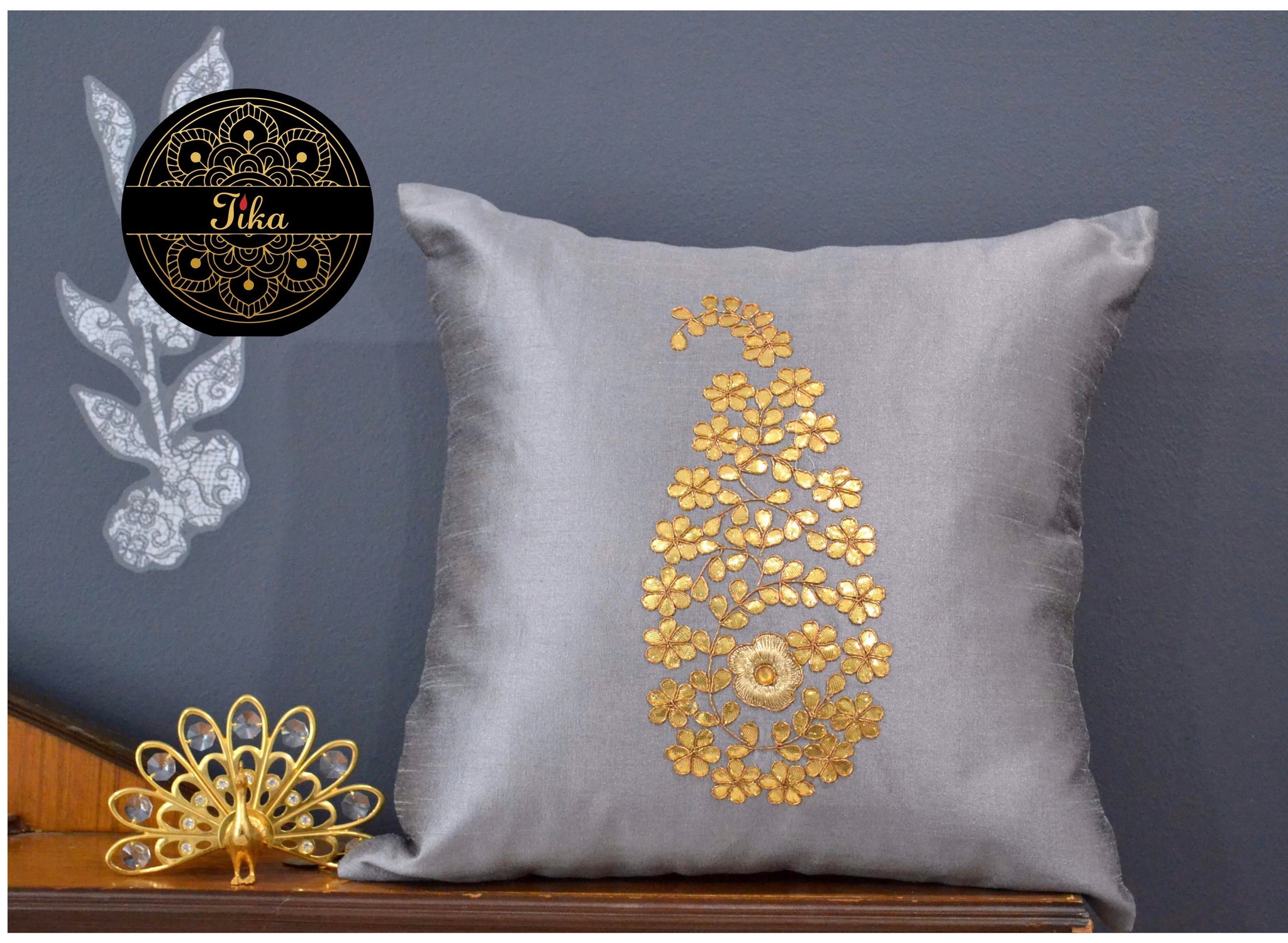 Hand Embroidered Golden Paisley Leaf Design Silk Cushion cover comes with complimentary eco-friendly & hypoallergenic cushion inner made in Australia with high quality which will add an element of elegance & beauty to any corner of your home. These exclusive cushions are luxurious designs, yet at affordable prices.